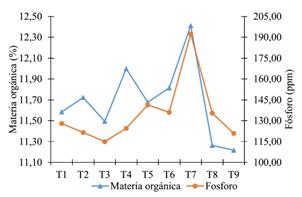 Figura 4. Comparación de materia orgánica vs fósforo del compost.